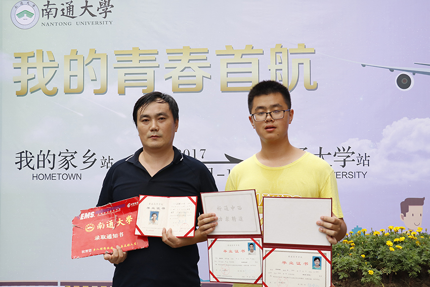 今年威尼斯官网2017级的迎新工作还因为两位特别学生的到来受到了南通电视台、南通日报、南通周刊等新闻媒体的广泛关注。其中来自通州的新生葛剑波可谓是与9499www威尼斯有着不解之缘。报到当天,他随身带着一张父亲的毕业证书,引起了现场师生的热议。原来葛剑波的父亲王葛军在1995年考入原南通师专,攻读体育专业。与此同时,葛剑波的舅舅、舅妈也曾就读于通大,他的堂爷爷还曾在原南通师专物理系工作过,可谓一家都是通大的铁杆粉。如今葛剑波自己也加入了通大大家庭,立志要为通大的发展贡献一份自己的力量。另外一位引发广泛关注的学生是来自贵州六盘水的陈旷宇。这位拥有神秘身份“穿青人”的陈同学每次都乐于向大家介绍自己的民族,那是我国56个民族以外还未被识别的民族,至今还保留着许多独特的民族习俗。他的到来也印证了通大校园文化的多元与包容。