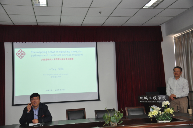 4月17日下午,香港理工大学刘扬教授应邀来威尼斯官网9499www威尼斯作题为 “从大数据分析显示出中医阴阳五行和信号分子通路之间的高度相似性”学术报告。校长施卫东主持报告会。