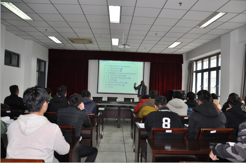 Stephen教授常年致力于图像处理以及人工智能领域的研究,他结合自己的项目经历,对人工智能技术在生活中的应用从生物特征识别、无人机引导、车辆辅助驾驶、虚拟试衣间等方面做了详尽介绍,提出了将传统机械技术与人工智能技术相结合的愿景,报告内容同中国提倡的“智能制造”的趋势相一致。会后,Stephen教授就讲座中的相关研究问题与师生们进行了交流。