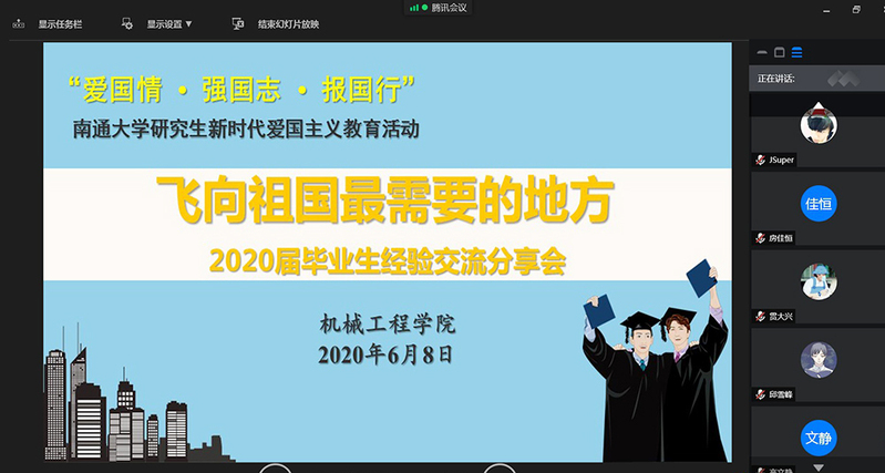 6月8日下午,9499www威尼斯开展研究生爱国主义线上主题教育活动——“飞向祖国最需要的地方”2020届毕业生经验交流分享会。
