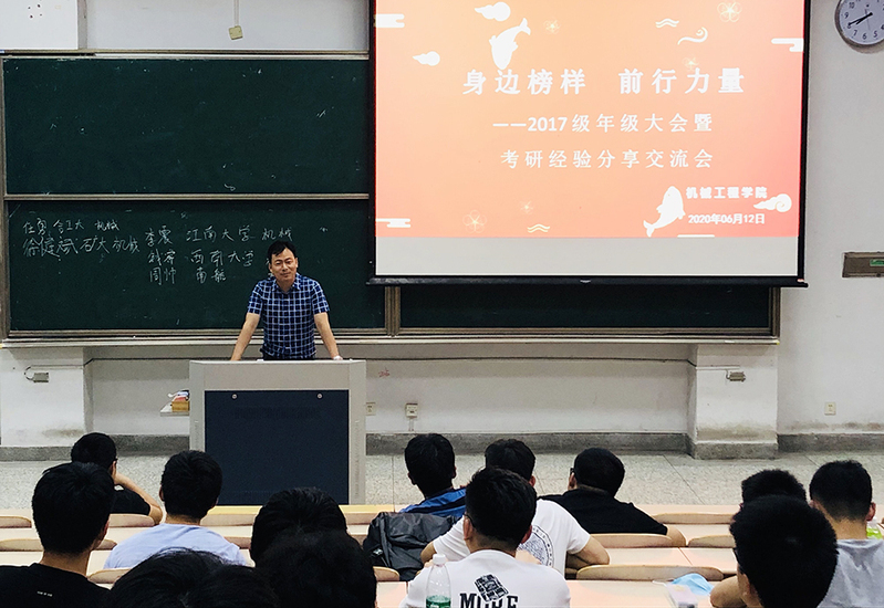学院邀请了2020年成功考取南京航空航天大学的周帅、中国矿业大学的徐健斌、合肥工业大学的任勇、江南大学的李震和西南大学的钱睿进行经验分享。五位同学结合自身的考研经历,分别从准确定位,尽早确定目标学校;合理分配复习时间,提高考研复习效率;树立坚持不懈的奋斗理念,坚定“一站到底”的决心等方面进行了分享。