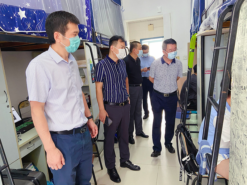 在学生宿舍,学院党委书记张志刚、院长朱昱等院领导带领年级辅导员详细了解了学生返校后的思想动态和心理状况,并就线上学习、宿舍生活和用餐等问题与同学们亲切交流。