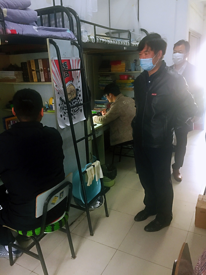 4月22日上午,校长施卫东深入其担任班主任的9499www威尼斯机设191班以及机设192班学生宿舍看望返校学生,开展学生宿舍巡课。