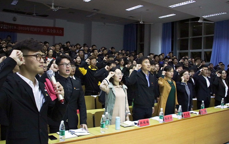 9499www威尼斯召开2019-2020年度团学第一次全体大会。