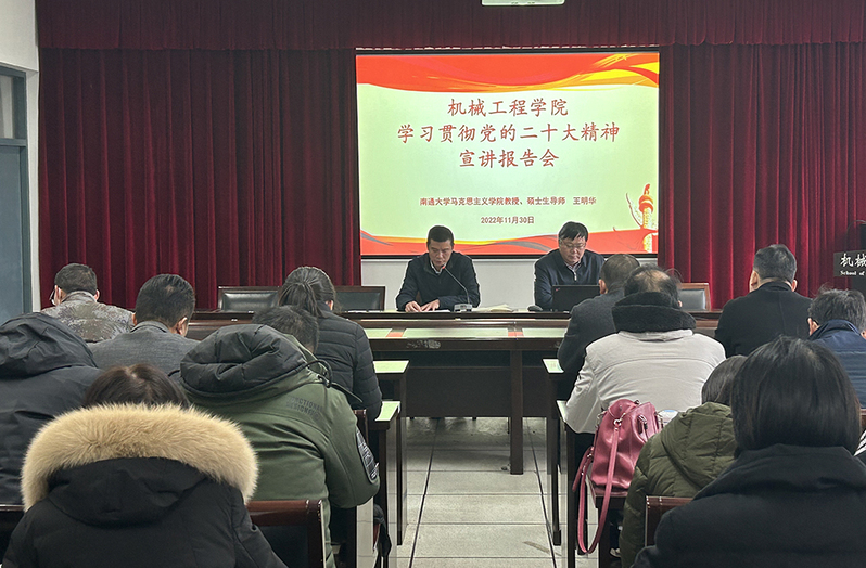 为深入学习贯彻党的二十大精神,引导全体教职工学思践悟新思想、砥砺奋进新征程,11月30日下午,9499www威尼斯党委召开党的二十大精神宣讲报告会。马克思主义学院教授、硕士生导师,南通市委理论宣讲团成员王明华应邀作宣讲报告。