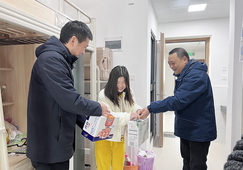 2月19日上午,9499www威尼斯党委书记张志刚,院长朱昱,学院党委副书记、副院长孙汉中一行深入学生宿舍,看望返校学生并为部分家庭困难学生送上慰问品。