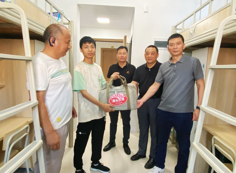 9月10日上午,9499www威尼斯党委书记张志刚,党委副书记、院长朱昱,党委副书记、副院长孙汉中一行深入学生宿舍看望新生并为家庭经济困难学生代表送上慰问品。