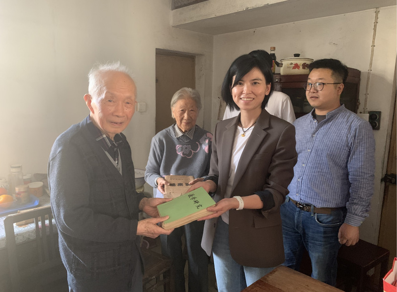在退休教师魏伯符家中,92岁高龄的老先生精神矍铄,四十多年教龄的他向青年教师讲述了当时从浙江大学回通教书的历程,拿出当年在浙江大学的备课笔记和自编的教学研究资料与青年教师分享教研体会,青年教师们为一篇篇整齐的笔记、精美的手绘制图所折服,老先生的敬业精神和严谨的教研态度让人深受教育。深入交流后,魏伯符和夫人主动提出将部分手稿捐献给学院。