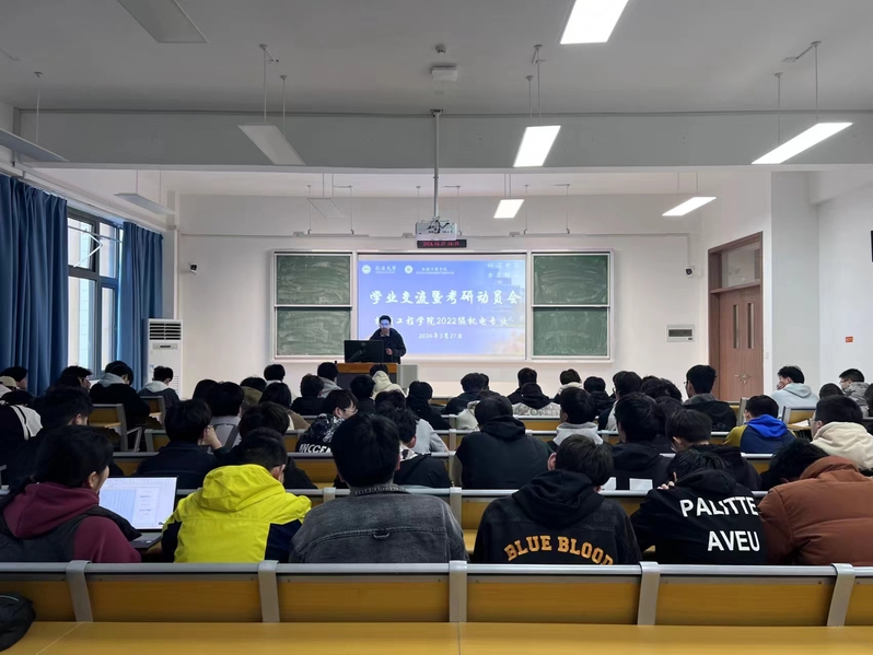 崔锦灿向同学们介绍了学历提升的重要性,指出考研是应对社会竞争、促进自身发展和实现自我价值的重要途径,鼓励同学们要明确考研目标、坚定考研信心、做好考研准备,争取在未来的竞争中应对考研挑战,实现梦想。曹宇鹏从个人经历出发,讲述了考研对于个人发展的意义,并分享了考研学习方法,要求同学们提前做好自身规计划、积极行动。王啸以学校往年升学深造数据为参考,就院校选择、专业选择以及信息搜集三方面进行了有针对性的指导,鼓励同学们要开拓眼界,积极尝试。宣斌向同学们分析了当前的考研和就业形势,从经验分享、学科特点、院校规划等方面进行了详细讲解。