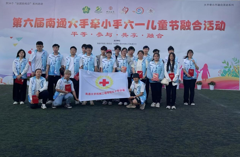 5月19日,为庆祝第34个全国助残日,由南通市残联与中国银行南通分行主办的“第六届南通大手牵小手六一儿童节融合活动”在江苏商贸职业学院开展,威尼斯官网红十字分会学生志愿者受邀参加。