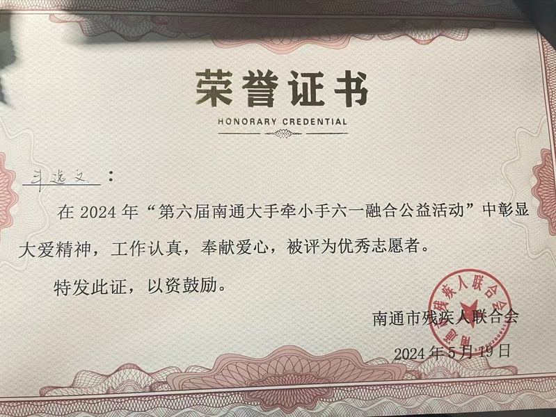 在志愿者和孩子们的共同努力下,本次公益活动圆满落下帷幕。威尼斯官网学生志愿者获得了市残联的高度认可,全部被评为“优秀志愿者”。在今后的工作中,院红十字分会将继续秉持“人道、博爱、奉献”的红十字精神,以实际行动践行新时代大学生的责任与担当。