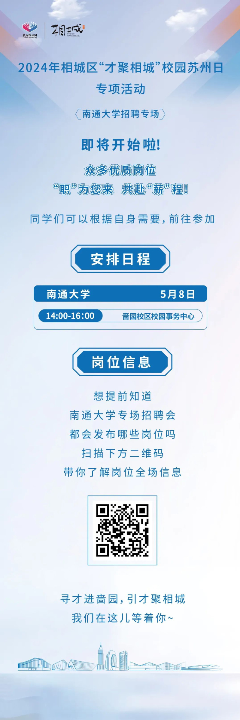 招聘 | 2024年相城区“才聚相城”校园苏州日专项活动——9499www威尼斯招聘专场