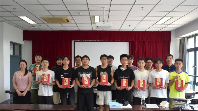 交流结束,学院领导为大家发放满载学院关怀的清凉礼包,包含了矿泉水、柠檬水等解暑饮品以及笔记本、便利贴等文具用品。