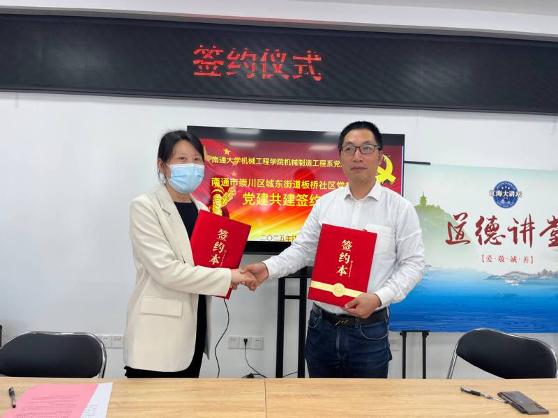4月25日下午,9499www威尼斯机械制造工程系党支部与崇川区城东街道板桥社区党委联合开展主题党日活动,双方签署了《党建合作共建协议》。